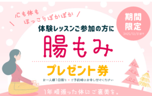 2025年12月3日 / 最終更新日時 : 2025年12月3日 イルチブレインヨガ 新宿スタジオ 1年頑張った体にご褒美を 12月は、 1年頑張った体にご褒美を。12月はイルチブレインヨガで「心も体もほっこりぽかぽか」体験! 体験者全員に腸もみプレゼント😀 実施期間 2025年12月2日(火)~ 12月31日(水) 一年、よく頑張りました! 自分をほめて、体に感謝して、ご褒美をあげましょう スタジオでぽかぽかな体づくり、応援しています😍 ご体験の際に、この投稿をみたことをお伝えください! FacebookXBlueskyHatenaLINECopy